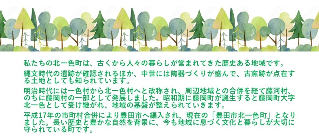 私たちの住んでいる北一色自治区の概要や目指す地域づくりについてお知らせします。