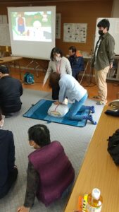 さる10月26日に区民会館にて防災訓練が実施されました。消防団の団員のかたがたの協力の下に区民の皆さんも熱心に訓練に取り組んでいただけました。